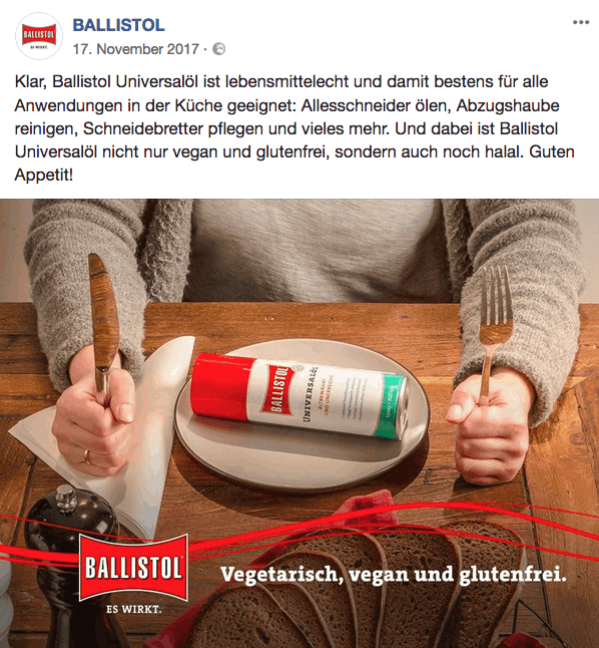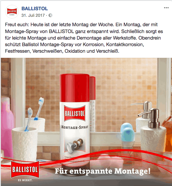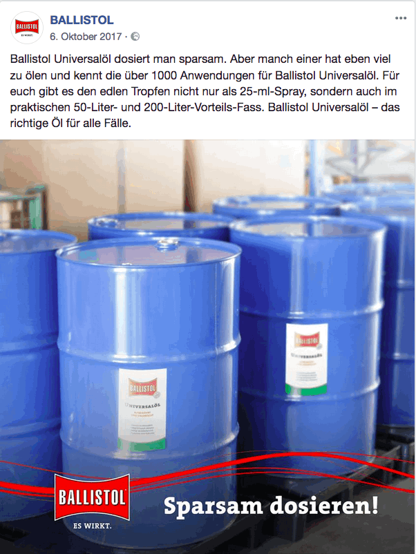 Konzeption, Content-Entwicklung und Text für diverse Post-Serien der Facebook Seite von BALLISTOL.