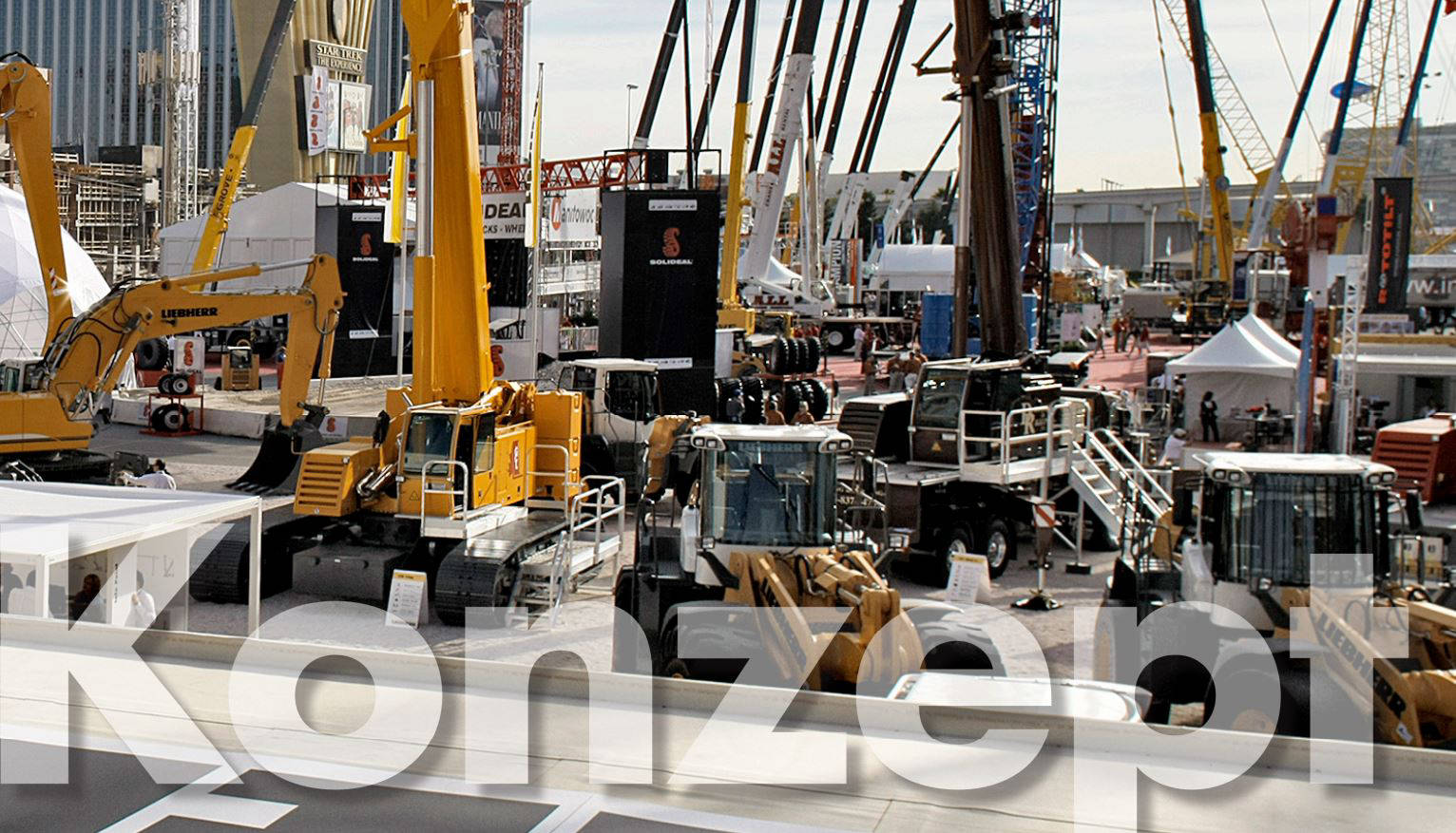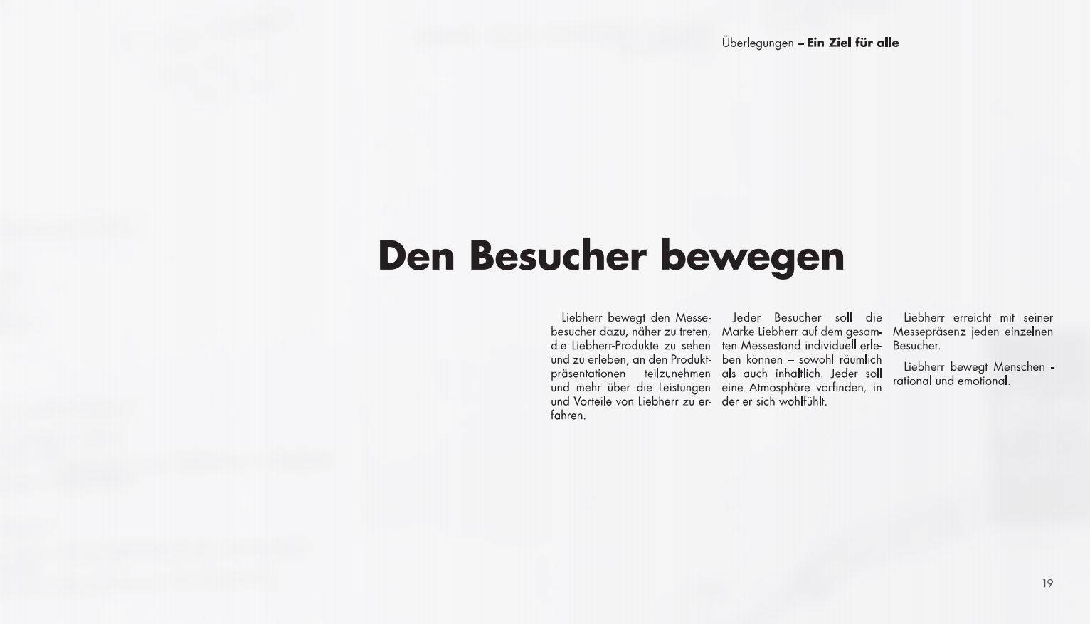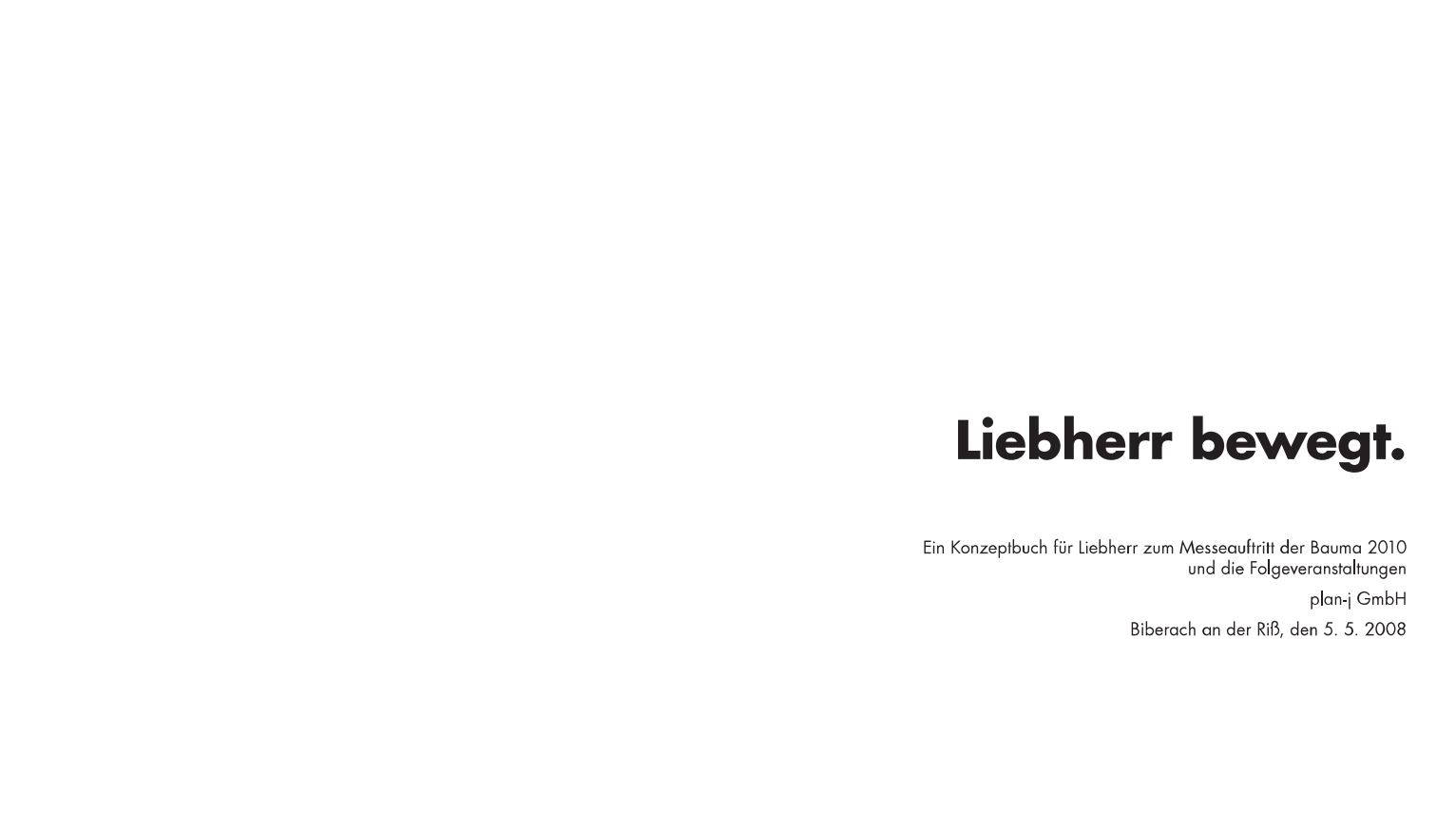 Text und Konzeption eines 96-seitigen Präsentationsbuchs zur Messe-Architektur von Liebherr (Wettbewerbspräsentation)