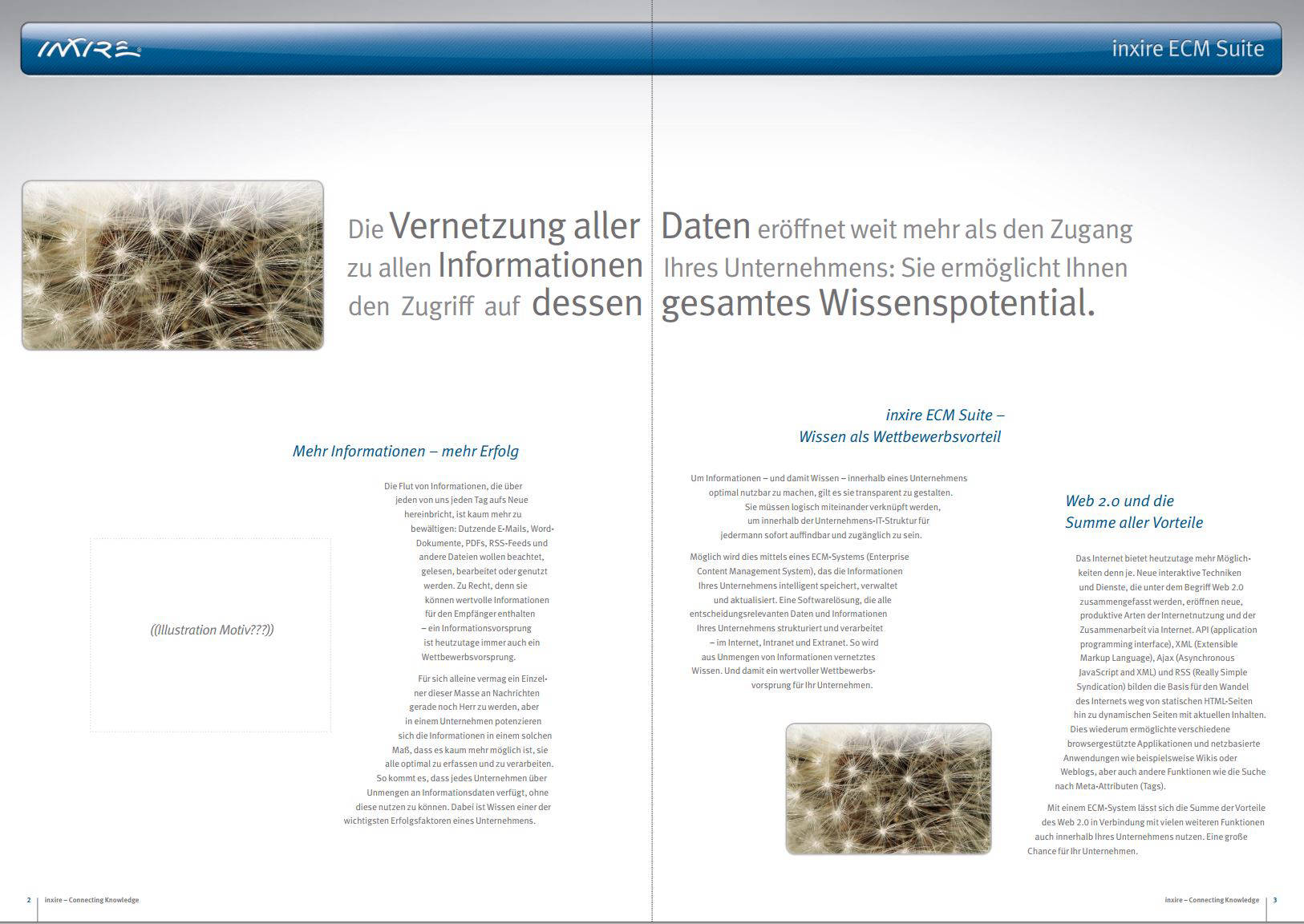 Konzeption und Text einer Image- und Produktbroschüre des ECM-Software Entwicklers inxire.