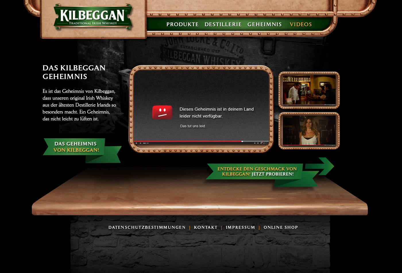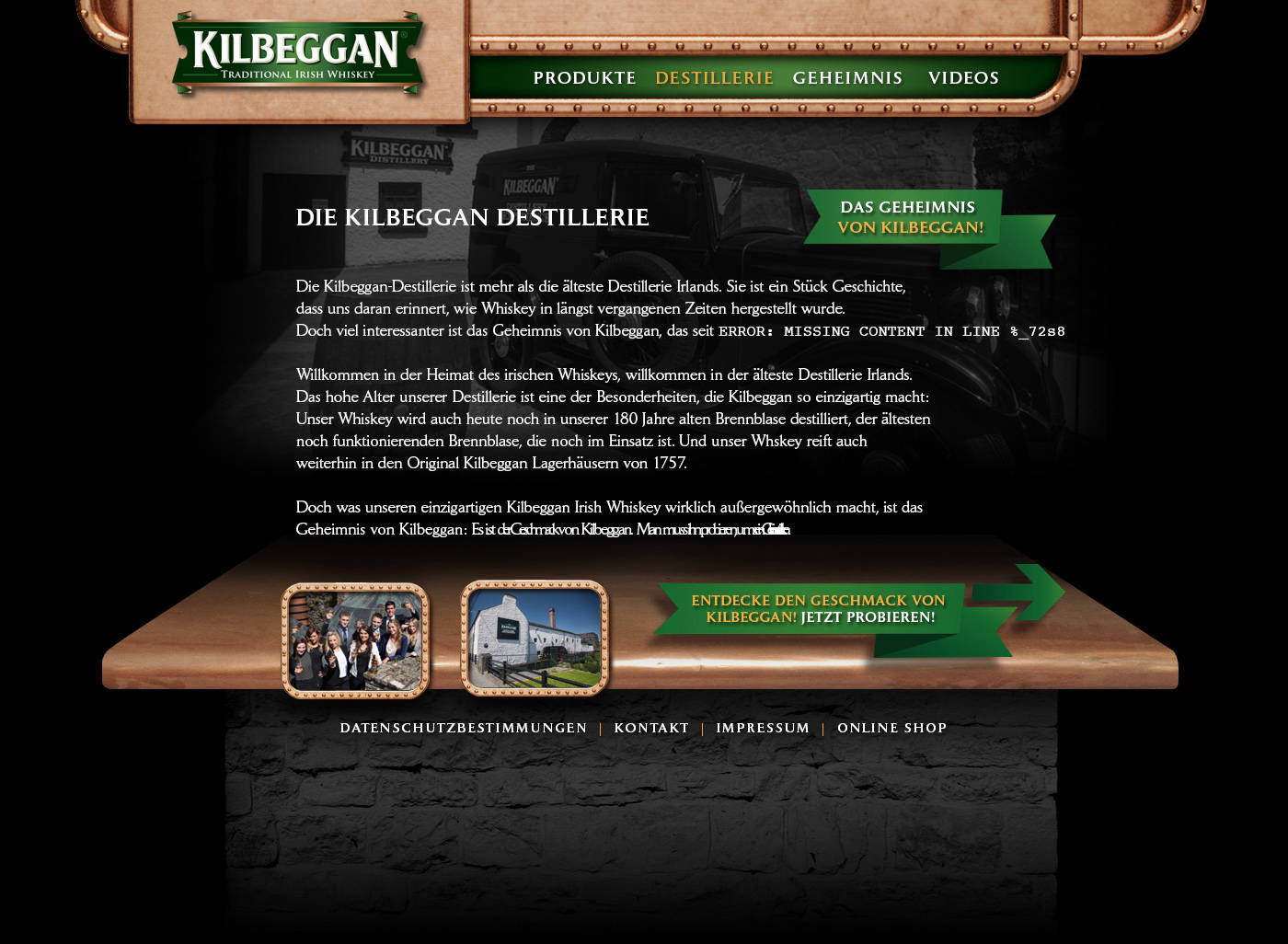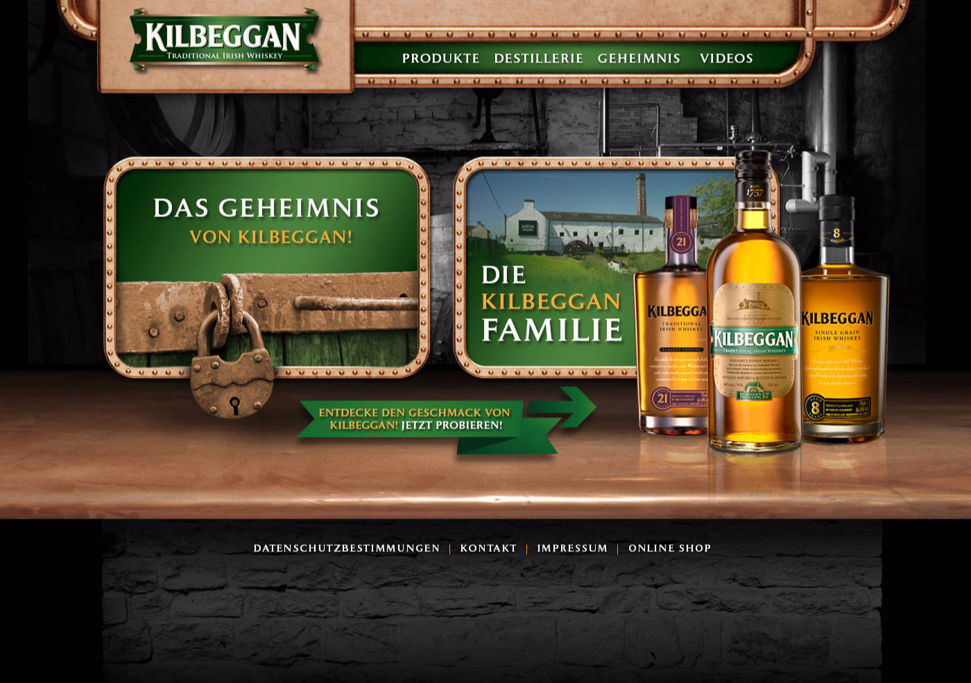 Konzeption und Text der Webseite für die Whiskey Destillerie Kilbeggan.
